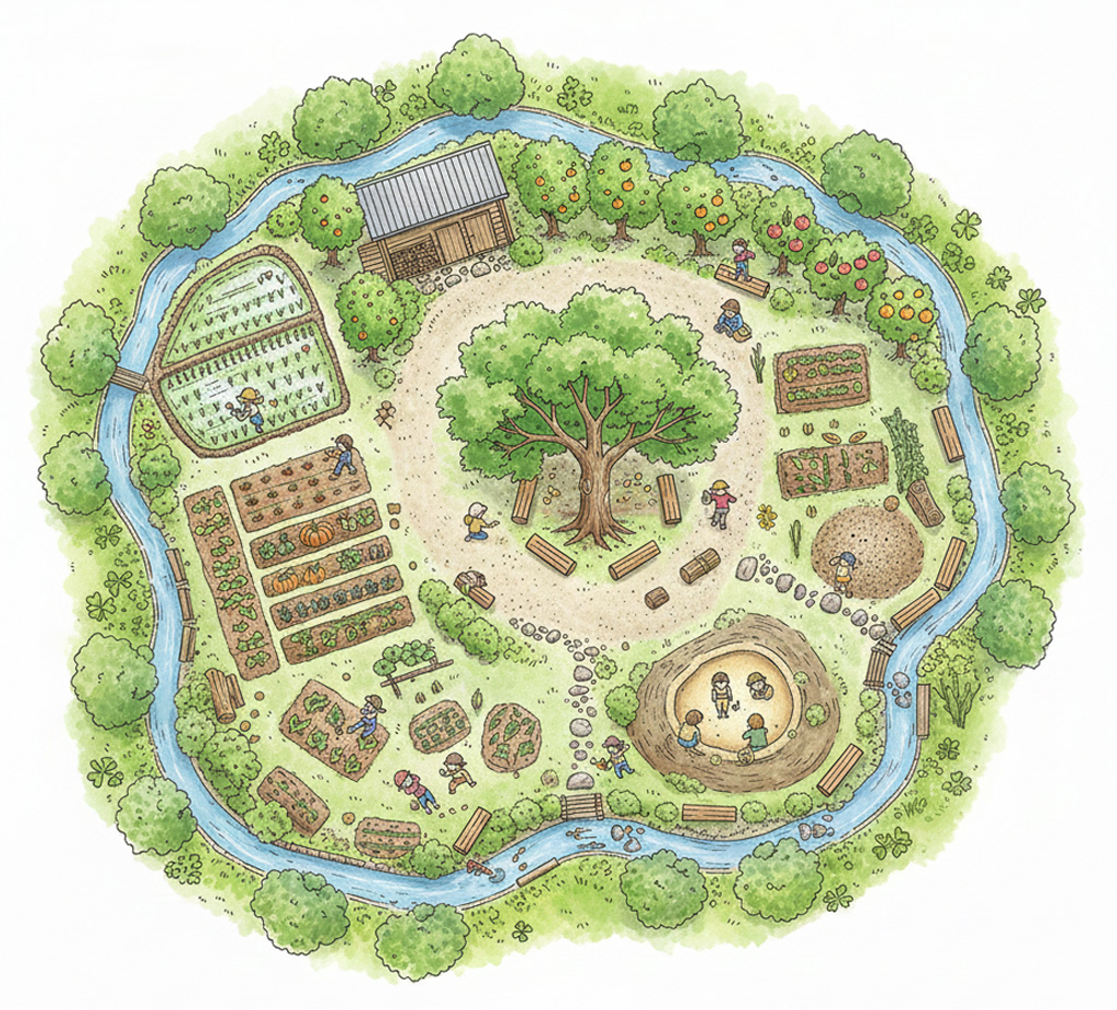 多世代交流広場+菜園+東屋 |