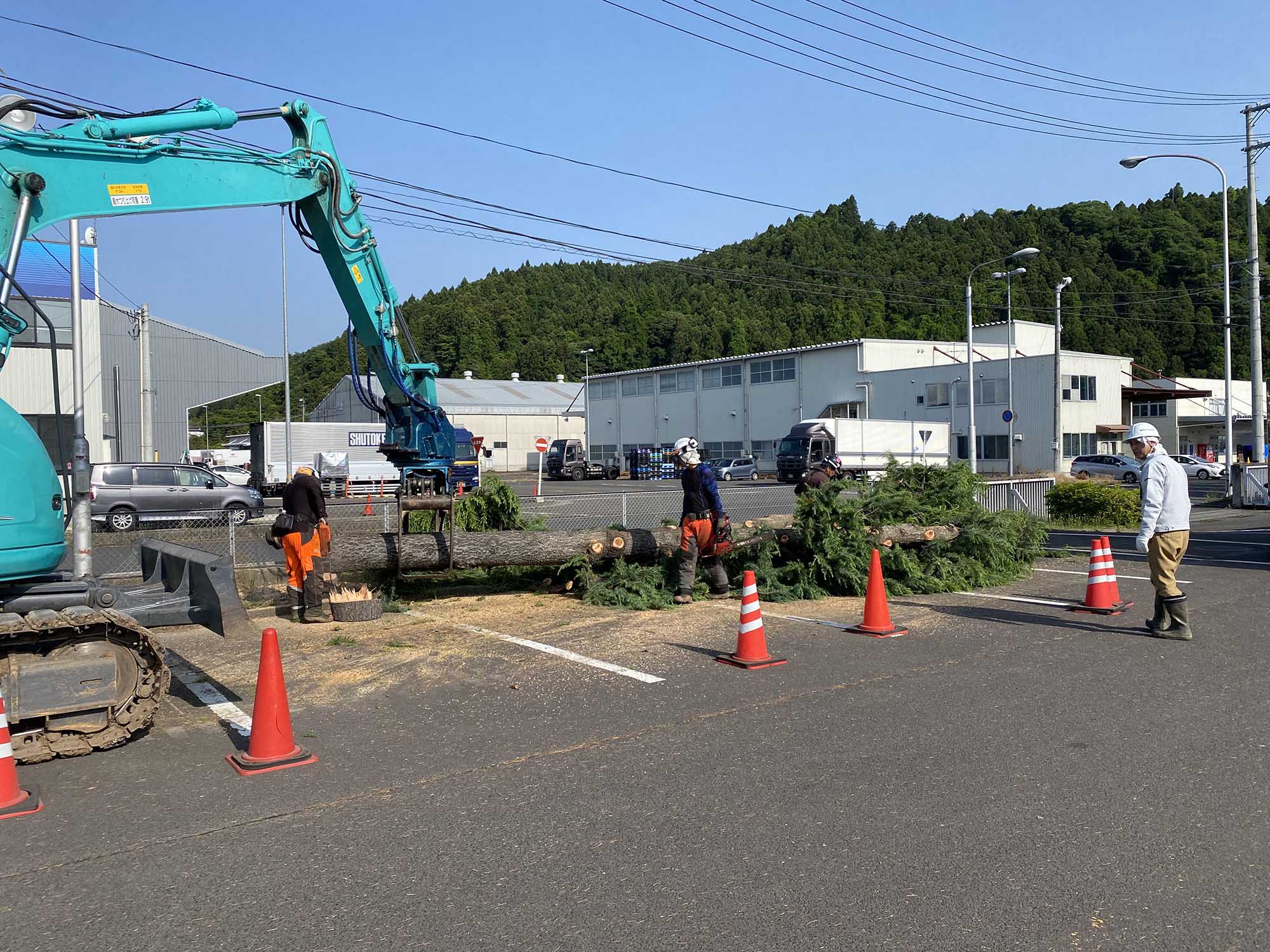 倒木の危険性があるヒマラヤスギを伐採しました。駐車場も落枝の心配もなくなりました。