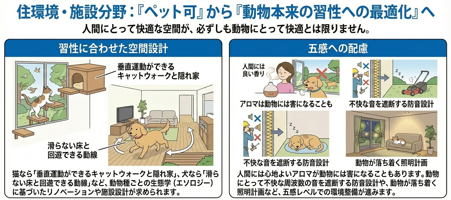 住環境・施設分野: 「ペット可」から「動物本来の習性への最適化」へ